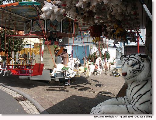 | Eckels historisches Kinderkarussell mit dem Schweinchen Jolande hat schon bei vielen Freiheiter Kirmessen Spaß gebracht. |